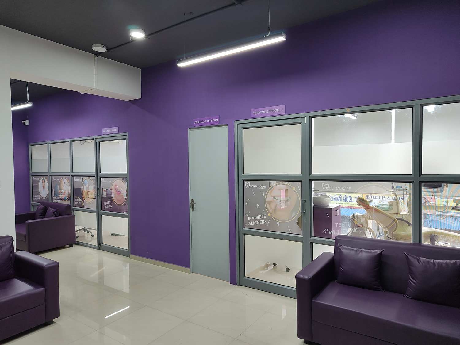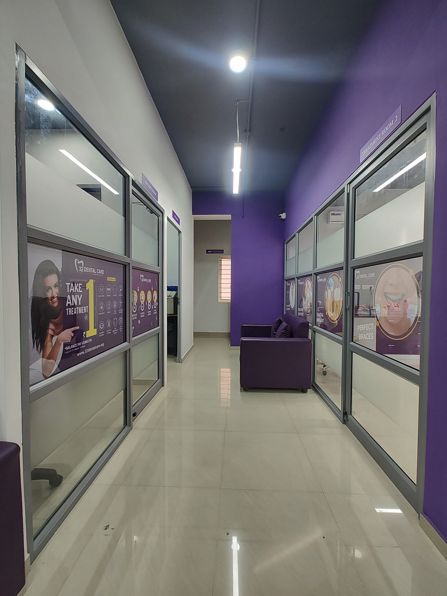 Concept: The design concept emphasizes a clean, modern aesthetic that reflects the professionalism and advanced technology associated with 32DENTAL CARE. The use of calming colors and sleek materials creates a reassuring and inviting atmosphere.